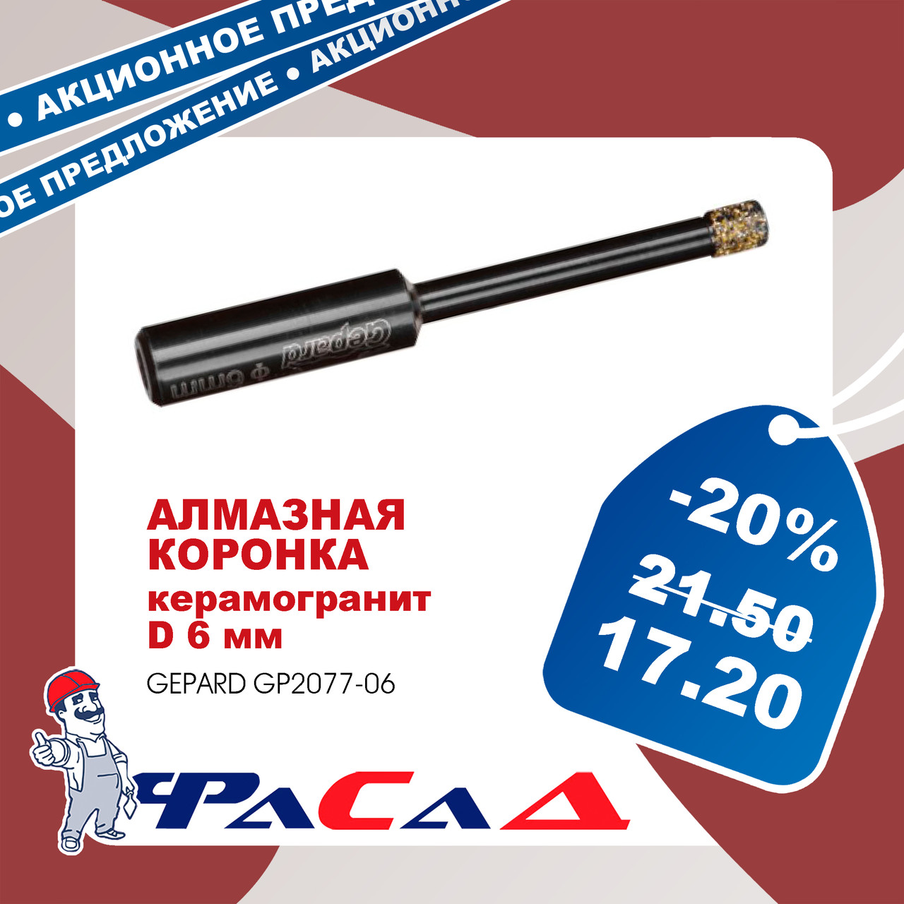 Коронка алмазная 6мм керамогранит GEPARD (GP2077-06) (сверло алмазное трубчатое по керамограниту)