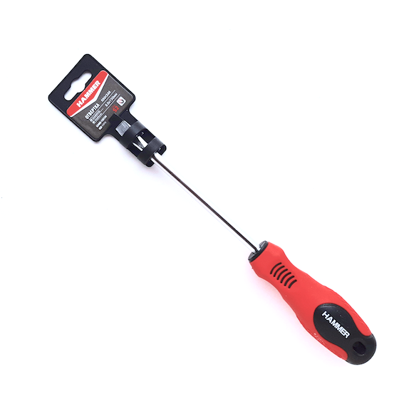 Отвертка шлицевая (плоская) Hammer, закаленный наконечник, магнитный наконечник, эргономичная двухкомпонентная рукоятка.